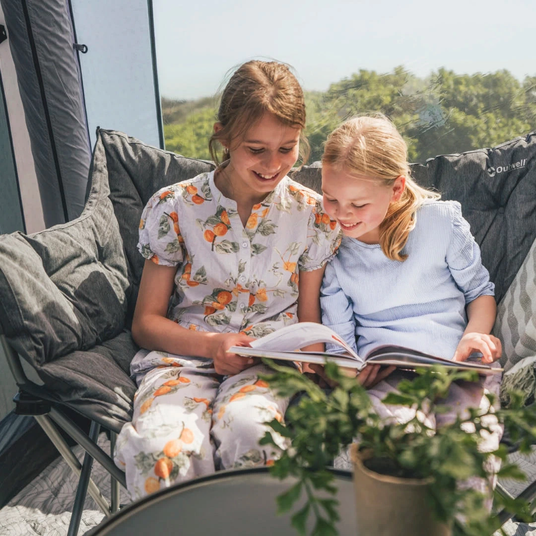 The Outwell Hartford 6 Air tent boasts a vis-à-vis style, providing a sense of privacy for friends camping or parents with older children. Inside, the darkened bedroom inners at either end feature noiseless, hands-free access through patented magnetic Quick & Quiet inner doors. The central living area offers plenty of headroom and versatility, allowing for a comfortable camping experience. For even more living space, the two-person bedroom inner can be tucked away. With opposing doors on both sides, complete with mesh for ventilation, easy access is guaranteed.