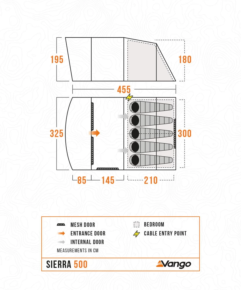 The Vango Sierra 500 is a 5-man poled tent designed with a strong emphasis on ventilation. With multiple mesh panels strategically placed, including one behind the bedrooms, this tent offers exceptional airflow to keep you cool during warm breaks. Crafted with Dynamic Weave 100™ Fabric, the Sierra remains lightweight and compact without compromising on Vango’s renowned quality and durability. Enjoy a longer rest with the Midnight Bedrooms® design, and utilize the pre-attached front canopy as a dining and relaxation area, bringing the outdoor experience to your tent. Perfect for summer family vacations.